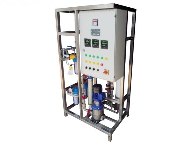 AQUALINE TETRA SERİSİ DENİZ SUYU TERS OZMOZ SİSTEMLERİ 100 m3/gün ile 1500 m3/gün STANDART ÖZELLİKLER Membran kılıfları FRP TFC Spiral Sarım Membranlar 8\” çap AISI304 veya AISI316 Dublex kalite paslanmaz çelik yüksek basınç pompası St37 Epoxy boyalı Karbon Çelik veya AISI304 Paslanmaz Çelik şase 5 mikron hassasiyetinde kartuş filtrasyon Alçak basınç hattı U-PVC PN16 Yüksek…
